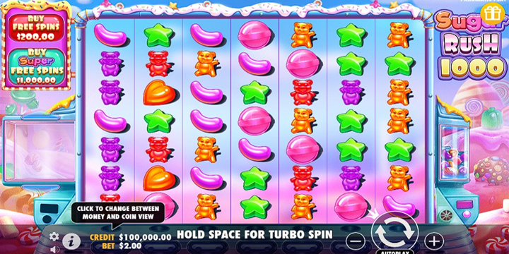 Sugar Rush menghadirkan sensasi manis dan penuh warna melalui tema permen dan gula-gula yang ceria.